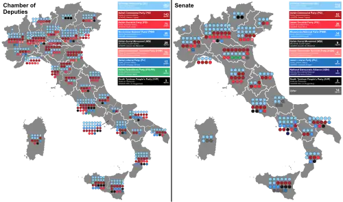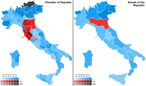 - ^ a b PCI and PSI ran in a unified list in the 1948 election, named Popular Democratic Front (FDP).
