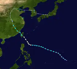 Judy formed on May 28, to the east of the Philippines. The next day, the storm started moving west, then later moving northwest. Over the following days, the storm moved northwest, albeit curving. On June 4, the typhoon hit the Philippines, reaching its peak intensity in Luzon. The storm later curved north, skirting Taiwan. The storm started losing speed, then increased speed on June 6. The storm later curved north, directly hitting Japan. Later dissipating the next day.[2] Judy damaged multiple areas in Japan, causing 37 deaths, 17 injuries, and leading 56 people missing. The storm also destroyed 1802 houses, inundated another 33 thousand, and damaged 139 ships.[3][4]