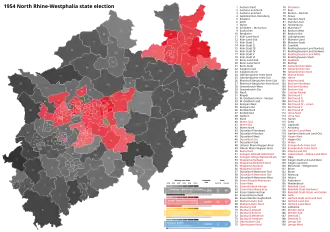 In the previous election held on 18 June 1950, the CDU remained the largest party with 37%, followed by the SPD on 32%. The FDP doubled its vote share to 12%, while the Centre declined to 7.5% and the KPD lost most of their support and finished with 5.5%. Alongside the election, the new state constitution was approved by a comfortable margin. The CDU chose not to renew the outgoing grand coalition and, after a brief period of minority government, formed a coalition with the Centre. Minister-President Karl Arnold continued in office.