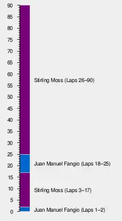 With only one Championship round therefore remaining (the Italian Grand Prix some 2 months later), Fangio's points advantage over Moss was sufficient to secure his third World Drivers' Championship.