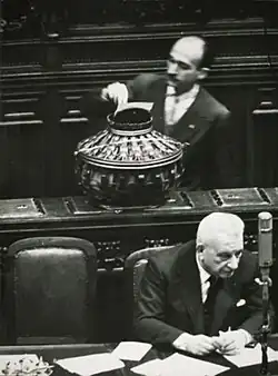 Giovanni Gronchi officially sworn in as the new President of Italy on 11 May 1955.