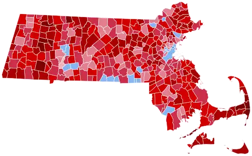 To date, this is the last time that the cities of Everett, Holyoke, Lynn, Malden, Medford, New Bedford, Newton, North Adams, Northampton, Pittsfield, Randolph, Salem, Somerville, Springfield, Winthrop, and Worcester and the towns of Adams, Arlington, Brookline, Montague, Provincetown, Sharon, Sunderland, and Watertown voted Republican.