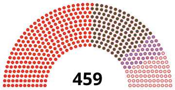 The Polish United Workers' Party (PZPR) won 237[4] (239 after by-elections)[11][b] seats out of 459[a] while the remainder went its satellite parties (Democratic Party and United People's Party) and a few independents.[4] PZPR 237 seats gave it 51.7% of total, ZSL with 120[4] (118 after by-elections)[11][b] had 26.1%, the independents with 63 had 14% (non-party faction, 51, and Catholics from the Znak association,[12] 12) and SD with 39 had 8.5%.[4] The FJN alliance was victorious, with 80.8% of the seats.