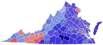 | Martinsville City | 1,774 | 60.77% | 1,142 | 39.12% | 3 | 0.10% | 632 | 21.65% | 2,919 |