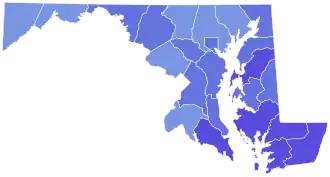 County results Tawes: 50–60% 60–70% 70–80% |