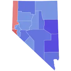 | Washoe | 13,232 | 49.80% | 13,339 | 50.20% | -107 | -0.40% | 26,571 |