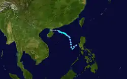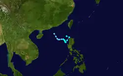Typhoon Kathy developed just east of the Philippines on October 21. It moved across the islands and entered the South China Sea. There, the system strengthened, and subsequently dissipated on October 27.