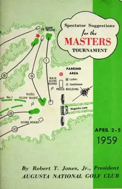 The 1959 Masters Tournament was the 23rd Masters Tournament, held April 2–5 at Augusta National Golf Club in Augusta, Georgia. Art Wall Jr. shot a final round of 66 (−6), with birdies on five of the last six holes, for his only major title, one stroke ahead of runner-up Cary Middlecoff, the 1955 champion.[2][3][4] Wall started the final round six strokes behind the leaders, in a tie for thirteenth place.[5]