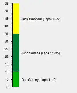 | 6 | 16 | Lotus-Climax | 48 | + 7 Laps | 7 | 1 | |