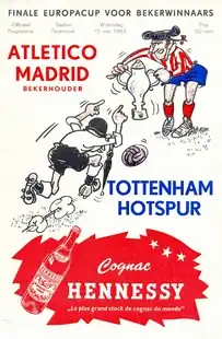 The 1963 European Cup Winners' Cup final was the final football match of the 1962–63 European Cup Winners' Cup and was the third European Cup Winners' Cup final. It was contested between Tottenham Hotspur of England and the defending champions, Atlético Madrid of Spain, and was held at Feijenoord Stadion in Rotterdam, Netherlands. Tottenham won the match 5–1 thanks to goals by Jimmy Greaves (2), John White and Terry Dyson (2). Tottenham's victory made them the first English team to win a UEFA trophy.