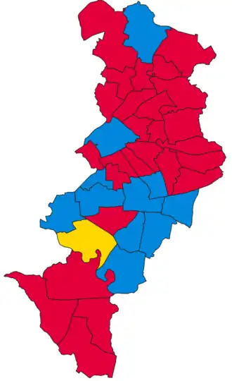| Labour Party | 77,772 (47.5%) | 26 (68.4%) | 26 / 38