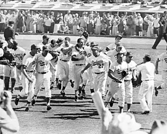Of the Dodgers' eight World championships to date, this remains the only one clinched in their home ballpark (although their 2020 title was won as the designated "home team" as part of that year's neutral-site World Series in Arlington, Texas).