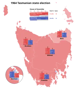 - Assembly Election Results, 1964, Parliament of Tasmania.
