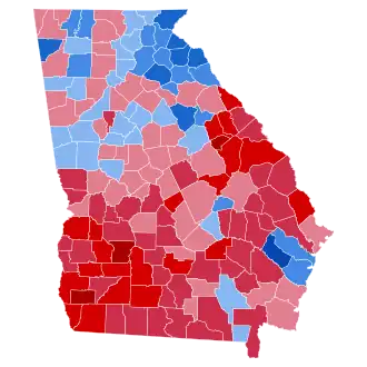 | Tattnall | 3,264 | 66.45% | 1,648 | 33.55% | 1,616 | 32.90% | 4,912 | ||