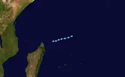 On January 7, Cyclone Denise passed north of Mauritius, producing wind gusts of 170 km/h (110 mph). Later, the storm crossed over Réunion, dropping record rainfall. Over a 24-hour period, Denise dropped 1,825 mm (71.9 in) of rainfall at Foc Foc, Réunion, of which 1,144 mm (45.0 in) fell over 12 hours; both precipitation totals are the highest recorded worldwide for their respective durations. Over 48 hours, precipitation totaled 2,230 mm (88 in) at Bras Sec. The heavy rains caused flooding that killed three people, and caused severe road and crop damage.[1][2][3]