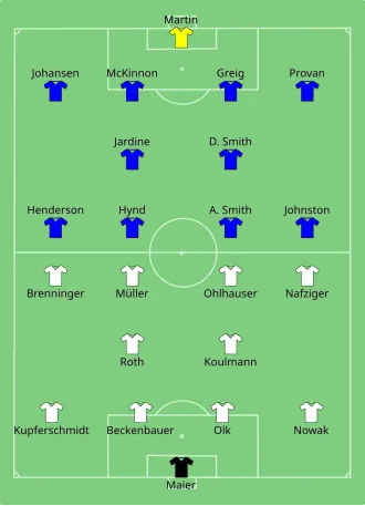 This was the first European final Bayern Munich had contested and it was played in Nuremberg, Germany. Although several thousand Scots travelled for the match Bayern had the home support advantage. Bayern Munich's team contained arguably some of the best German footballers of all time including Sepp Maier, Franz Beckenbauer and Gerd Müller.[1]