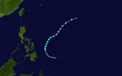 Kim formed southeast of Guam on May 28. It intensified into a Category 3 typhoon while curving northeast. Kim slowly weakened as it moved north. The storm dissipated on June 5.