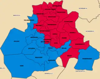 | Labour | 18 | 5 | 0 | +5 | 64.3 | 42.4 | 52,082 | +6.4 | |