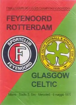 The 1970 European Cup final was a football match held at the San Siro, Milan, on 6 May 1970, that saw Feijenoord[a] of the Netherlands defeat Celtic of Scotland 2–1 after extra time. Ove Kindvall's goal in the 117th minute meant the trophy was won by a Dutch club for the first time. It remains Feyenoord's only European Cup triumph.