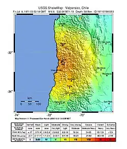 - ^ ANSS. "Valparaiso 2017: M 6.9 – 40 km W of Valparaiso, Chile". Comprehensive Catalog. U.S. Geological Survey. Retrieved 29 May 2020.