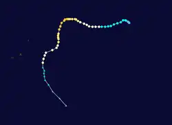 | Peak intensity | 130 km/h (80 mph) (10-min); 970 hPa (mbar) |