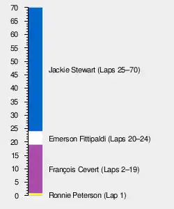 | 1 | 5 | Tyrrell-Ford | 70 | 1:42:13.43 | 6 | 9 | |