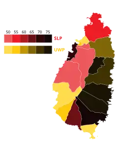 | Saint Lucia Labour Party | 14,554 | 44.65 | 7 | +4 | |