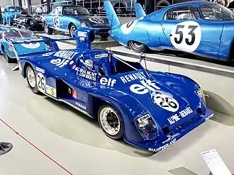 The fuel-economy regulations now made S-2000 class a lot more competitive. Renault Sport had won the inaugural 1973 World Rally Championship, and was now focused on Sports-car racing.[21] Along with its subsidiary companies Gordini (engines) and Alpine (chassis) had been working on a new sports car. For 1975, the new turbo-powered A442 made an immediate impression beating the Alfa Romeos at Mugello. However their cars were very new and proved fast but unreliable.[20] The works team did not enter, however a non-turbo, A441 arrived in the colours of Elf Switzerland for the all-female team of Marie-Claude Beaumont and Lella Lombardi.[21] It was the first Alpine to race at Le mans for six years.[2] André Moynet, French war hero, politician and amateur racer, had been building his own sports car, based on a Chappe et Gesselin chassis with a 2-litre Simca-JRD engine and Porsche transmission. He gained sponsorship from Elf's competitor Esso-France, who suggested also compiling an all-female driving team. Moynet hired Michèle Mouton, Christine Dacremont and Marianne Hoepfner for his car.[22]