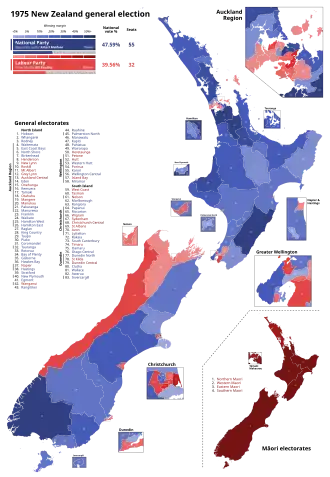 The 1975 New Zealand general election was held on 29 November to elect MPs to the 38th session of the New Zealand Parliament. It was the first general election in New Zealand where 18- to 20-year-olds[1] and all permanent residents of New Zealand were eligible to vote, although only citizens were able to be elected.
