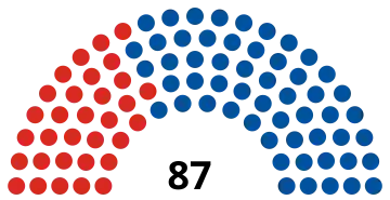 87 seats in the Parliament 44 seats needed for a majority | |||||||||||||||||||||||||||||||||||||