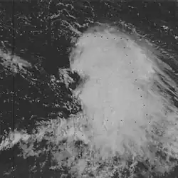 A tropical wave emerged into the Atlantic Ocean from the west coast of Africa on September 15. The system tracked westward at 17 to 23 mph (27 to 37 km/h) and convection began organizing five days later. On September 21, the wave crossed the Windward Islands, bringing wind gusts of 69 mph (111 km/h) to Guadeloupe and Martinique and rainfall of 5 to 8 inches (130 to 200 mm) on several islands. Although it was a strong tropical wave, the system weakened significantly while crossing Hispaniola on September 23. Tracking steadily northward, it developed into a tropical depression northeast of the Bahamas on September 26. A reconnaissance aircraft indicated that the depression strengthened into Tropical Storm Dorothy at 1200 UTC on September 27.[20]