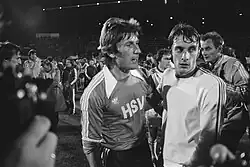 The 1977 European Cup Winners' Cup Final was a football match contested between Hamburger SV of West Germany and the defending champions, Anderlecht of Belgium. It was the final match of the 1976–77 European Cup Winners' Cup tournament and the 17th European Cup Winners' Cup final in history. The final was held at Olympisch Stadion in Amsterdam, Netherlands (the venue was decided in Bern by the UEFA Executive Committee on 17 September 1976).[1] Hamburg won the match 2–0 thanks to goals by Georg Volkert and Felix Magath.