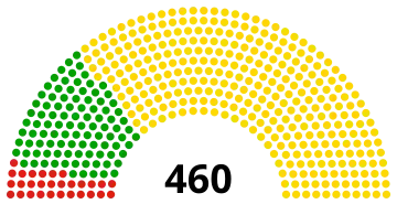 Last election 62.82%, 236 seats 27.12%, 94 seats[a] 10.06%, 30 seats[b]