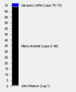 At the start of the race, Watson led into the first corner, followed by Jody Scheckter. Soon, however, Andretti passed both of them and opened up a lead. Watson and Scheckter battled for second until they collided, forcing Scheckter to retire and Watson to have to pit for repairs. James Hunt, who was now in second, began to drop back; he was passed by a charging Jacques Laffite and his teammate, Jochen Mass.