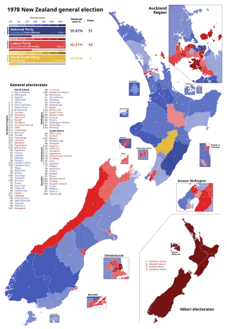 The 1978 New Zealand general election was a nationwide vote to elect the 39th New Zealand Parliament. It saw the governing National Party, led by Robert Muldoon, retain office, but the opposition Labour Party won the largest share of the vote. Reorganisation of the enrolment system caused major problems with the electoral rolls, which left a legacy of unreliable information about voting levels in this election.