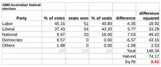 In the election, Labor finished only 0.8 percent behind the Coalition on the two-party vote—a four-percent swing from 1977. However, due to the uneven nature of the swing, Labor came up 12 seats short of a majority, giving the Coalition a third term in government. Hayden, however, did manage to regain much of what Labor had lost in the previous Coalition landslides of 1975 and 1977. Notably, he managed to more than halve Fraser's majority, from 23 seats at dissolution to 11.