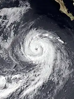 The 1980 Pacific hurricane season began on April 5, 1980, with the crossing of the International Date Line by Tropical Storm Carmen[4] and ended with the dissipation of Tropical Depression Newton on October 29.[3] Of the sixteen tropical cyclones that in the eastern north Pacific Ocean during 1980, one was a tropical depression, eight were tropical storms,[4][3] and seven were hurricanes, of which three were major hurricanes of Category or higher on the Saffir–Simpson scale. Of these systems, all except one tropical storm formed east of 140°W in the eastern Pacific proper.[3] These totals are below the long-term average of fifteen tropical storms, nine hurricanes, and four major hurricanes.[5] Two tropical cyclones existed in the central Pacific, both of which crossed in from other tropical cyclone basins.[4] This total is below the average of four or five tropical cyclones per year.[1]