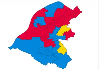 | Labour Party | 31,203 (40.4%) | 11 (50.0%) | 11 / 22