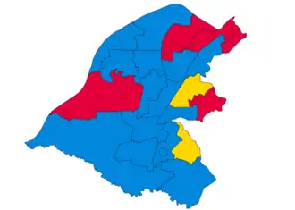 | Conservative Party | 36,657 (46.1%) | 15 (68.2%) | 15 / 22
