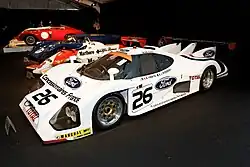 Ford had cancelled development of its under-performing C100 program in favour of a new Group C design. However, within a week of Karl Ludvigsen leaving as Ford-Europe VP, that program was also cancelled, as was improvement to the problematic Cosworth DFL engine.[23][24][22][11] Irish gentleman-racer Martin Birrane wanted to move into Group C and bought one of the C100 cars that raced the previous year for his new Peer Racing team.[23] In the absence of their parent company, the consortium of Ford France dealers put their support behind the Cosworth-powered Rondeau team. The M482 "ground-effects" project had had considerable development over the winter and the consortium purchased the three chassis. Max Sardou, who had done extensive aerodynamic work on his Ardex, the Lola T600 and March-BMW M1/C, was bought in to fine-tune the car aerodynamics. The team was managed by Pierre Dieudonné and a number of Jean Rondeau's team were brought in. Three-time winner Henri Pescarolo raced with Thierry Boutsen, newly promoted to F1 with Arrows. Jean Rondeau himself ran with the Ferté brothers, Alain and Michel while the third car had Jean-Pierre Jaussaud/Philippe Streiff.[25][13][26]