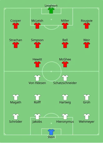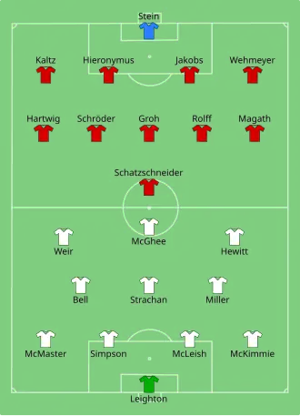 The first leg at the Volksparkstadion in Hamburg finished 0–0. In the second leg at Pittodrie Stadium, Aberdeen added their second European trophy with a 2–0 victory over the West Germans with goals coming from Mark McGhee and Neil Simpson.[1] Aberdeen became the first Scottish team to win the UEFA Super Cup.