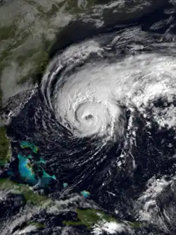 1. ^ A hurricane is a tropical cyclone with maximum sustained winds of at least 74 miles per hour (119 km/h).