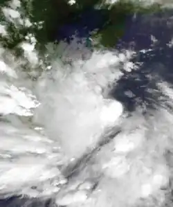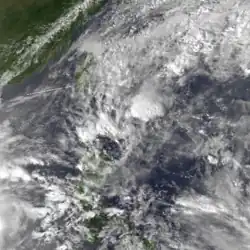 Development of this system was slow within the eastern portion of the monsoon trough. By midday on July 2, the disturbance was first noted about 1,020 kilometres (630 mi) southwest of Guam. The system moved northwest for much of its life cycle, initially following Alex and then the southwest side of the subtropical ridge. A broad tropical depression formed on the afternoon on July 5 within the disturbed weather area, weakening as it passed over Luzon. Late on July 7, ship reports indicated the system had become a tropical storm. The cyclone moved within the radar fence of Hong Kong near its peak intensity before making landfall 250 kilometres (160 mi) to its west-southwest during the early afternoon of July 9. Winds gusted to 70 knots (130 km/h) at Green Island.[1] Weakening over the topography of China was rapid thereafter, and the system dissipated by early on July 10.[6]