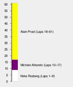 | 1 | 2 | McLaren-TAG | 61 | 1:41:26.115 | 6 | 9 | |