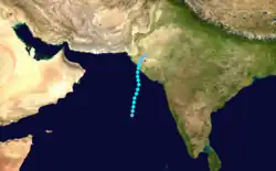A tropical depression formed in the central Arabian Sea on May 28. It headed northward, reaching a peak of 60 mph winds before hitting western India on the 31st. The storm dissipated on the 1st.