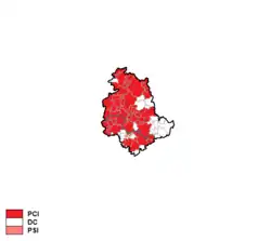 | Italian Communist Party | 258,806 | 44.4 | 14 | |