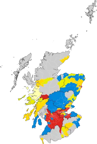 | Grampian | 18 (+2) | 15 (-11) | 12 (+7) | 9 (+5) | 3 | 57 | 35.61% | No overall control gain from Conservatives | Details | |