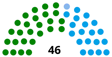 All 46 seats in Parliament 23 seats needed for a majority | ||||||||||||||||||||||||||||||