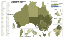 3. ^ "Result of referendum with respect to parliamentary terms". Commonwealth of Australia Gazette Special. No. S324. 27 October 1988. p. 1. Retrieved 15 November 2019 – via National Library of Australia.