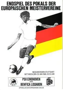 The 1988 European Cup final was a football match played between PSV Eindhoven of the Netherlands and Benfica of Portugal to decide the champion of the 1987–88 European Cup. PSV won 6–5 on penalties after a goalless draw after extra time. The match was played at Neckarstadion, Stuttgart, on 25 May 1988. According to PSV player Berry van Aerle, it was not a particularly good match, with both teams very cautious. However, it was exciting until the end and concluded in a tense penalty shoot-out.[1]